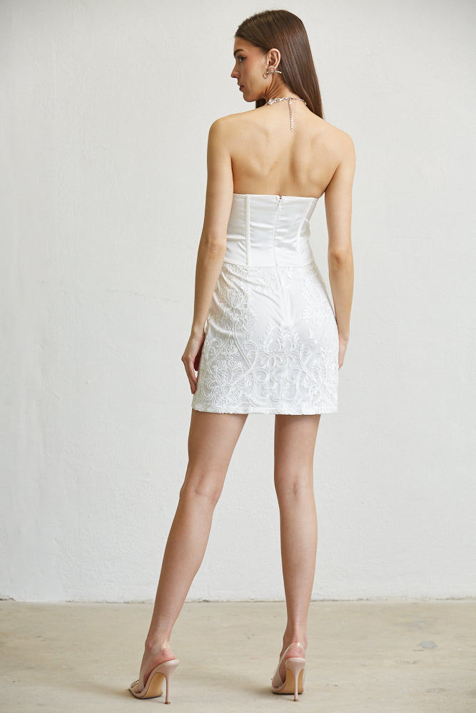 - SATIN AND EMRBOIDERED LACE FABRIC