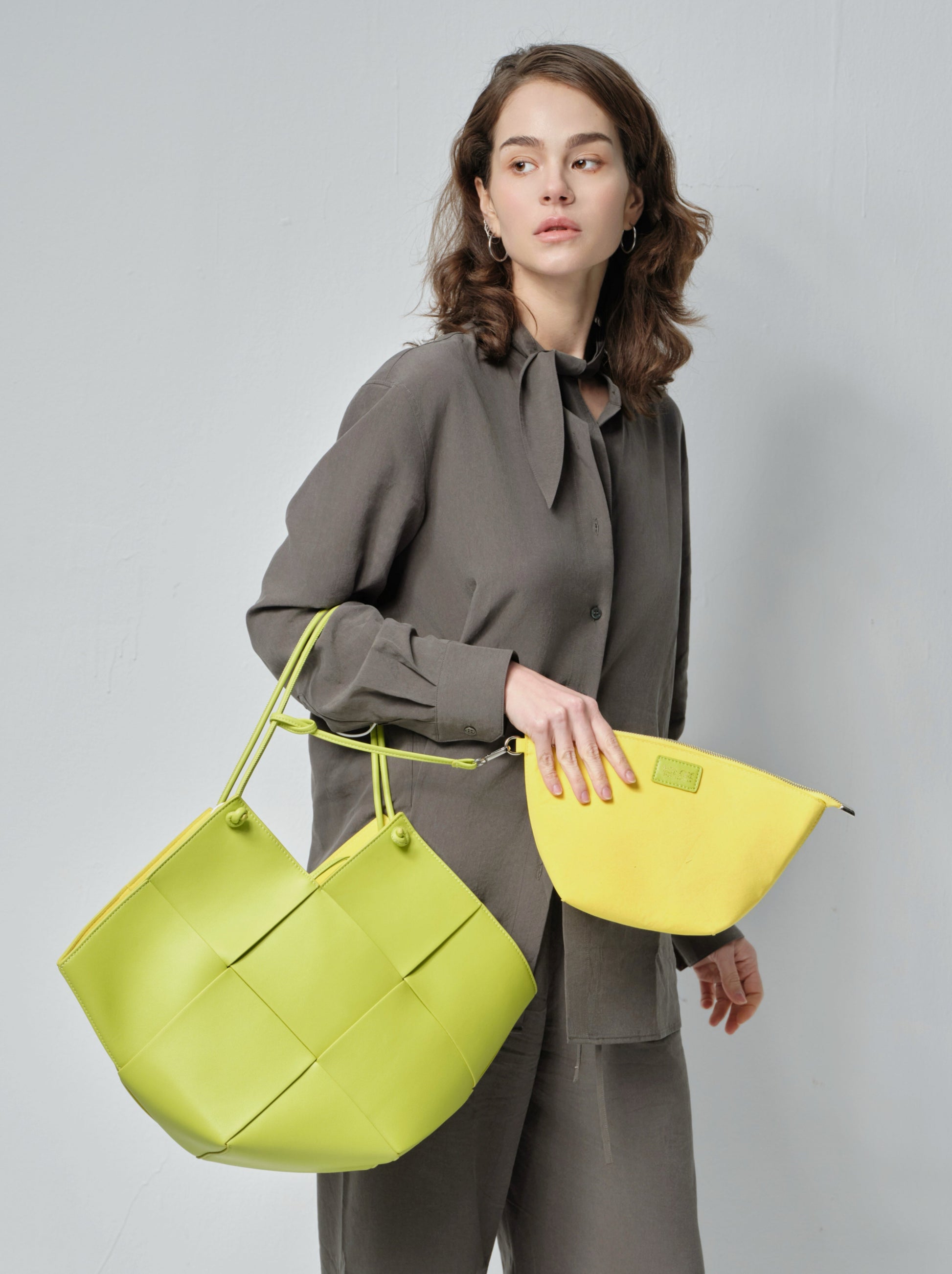 The Taylor Contexture Leather Bag's unique shape is sure to turn heads and make a statement. Its sleek and modern design is perfect for those who want to stand out from the crowd. And with the attached removable suede fabric compartment bag, you can easily organize and store all of your loose items.